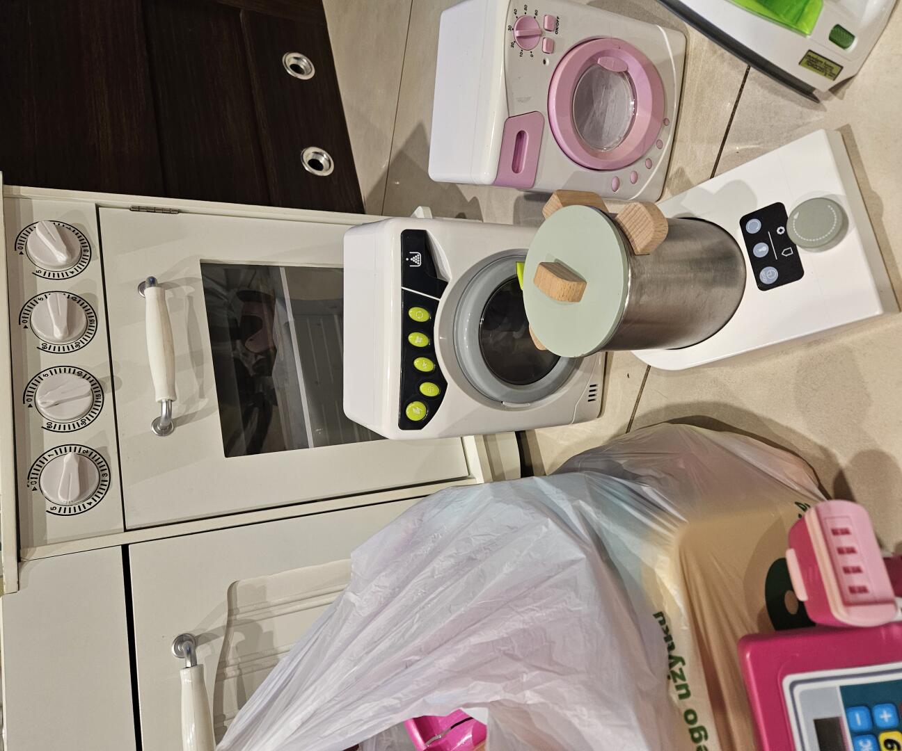 Sprzedam drewnianą kuchnię ze wszystkimi akcesoriami oraz 2 pralki, kasę, żelazko itp.