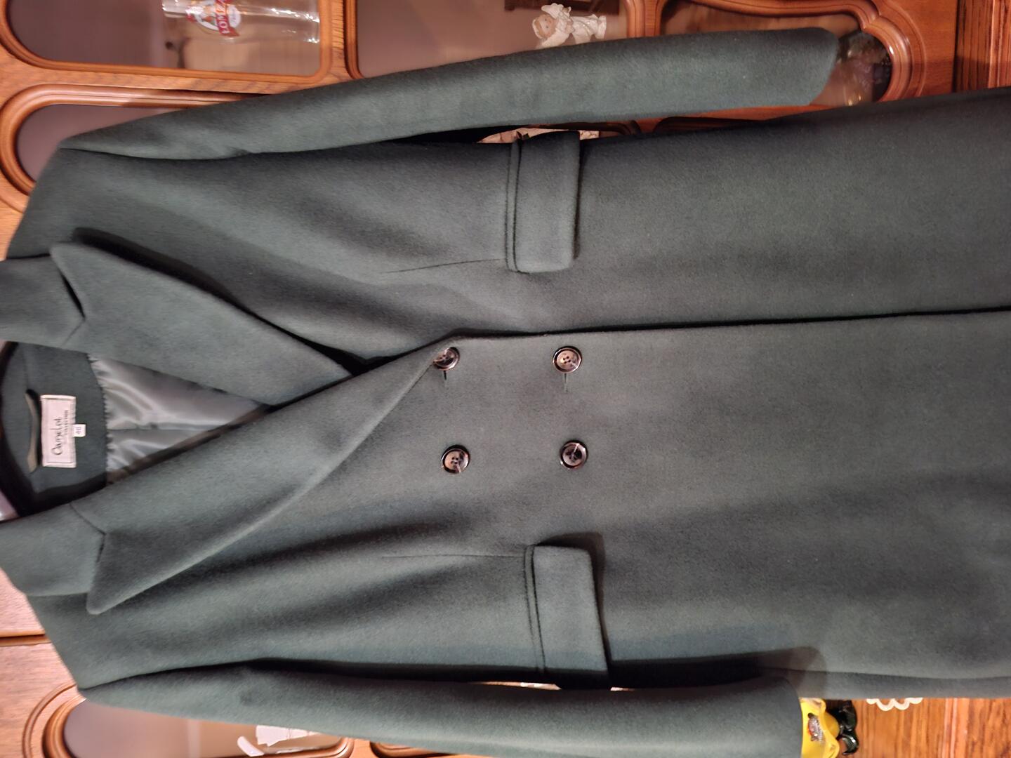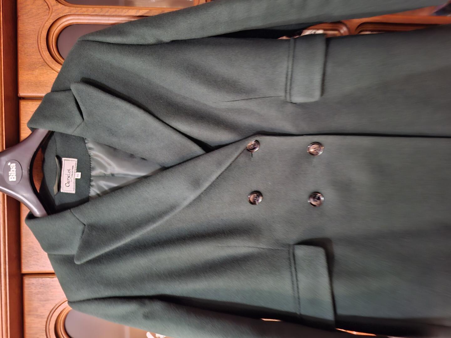 Sprzedam płaszcz damski, klasyczny krój w kolorze butelkowa zieleń (w rzeczywistości intensywny kolor), rozmiar z metki 46 ale bardziej na 44. Praktycznie raz założony, nitrafiony zakup.