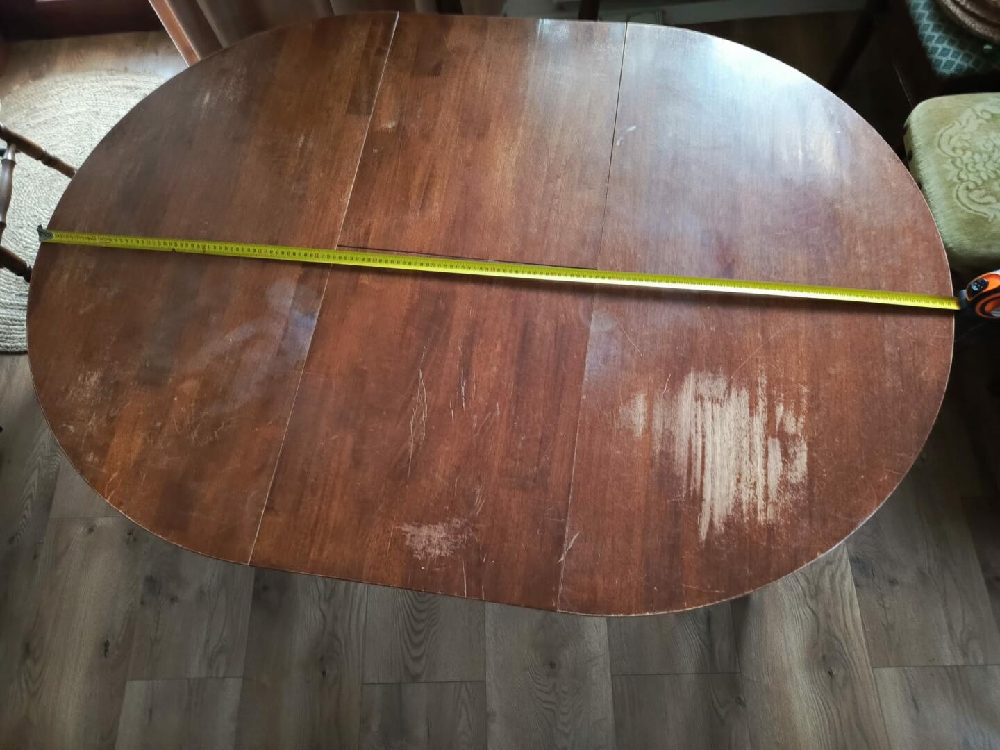 Sprzedam drewniany duży stół do salonu, pokoju, jadalni. Stan dobry, na blacie wytarty ślad, więc stół do niewielkiego odświeżenia