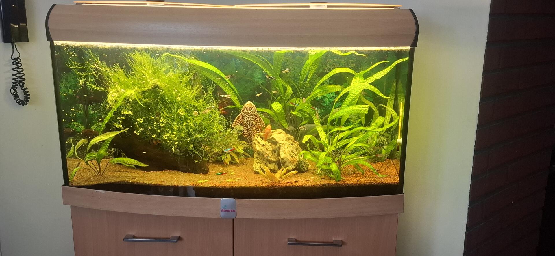 Sprzedam akwarium 200l diversa panoramiczne z pokrywą i szafką.