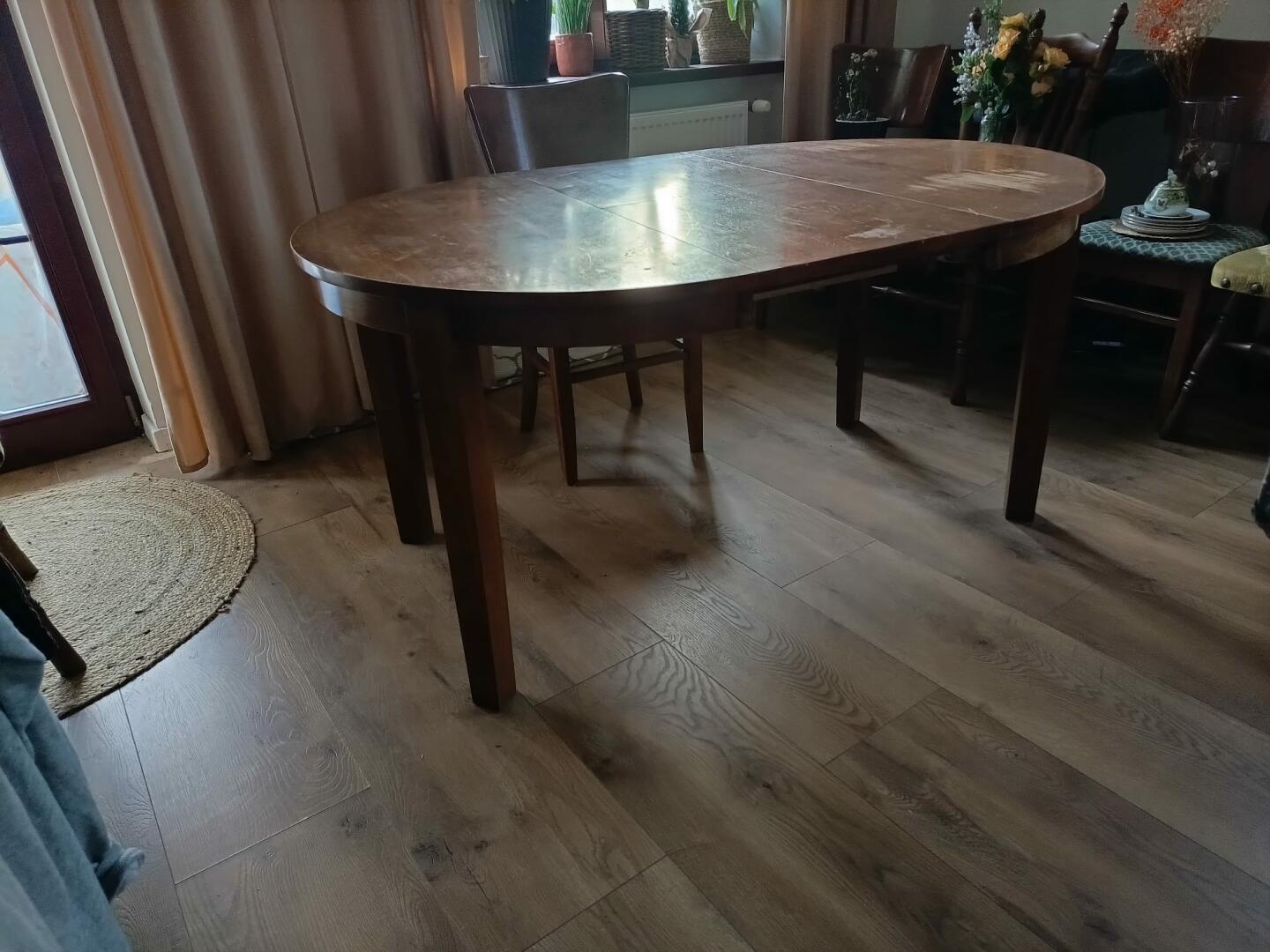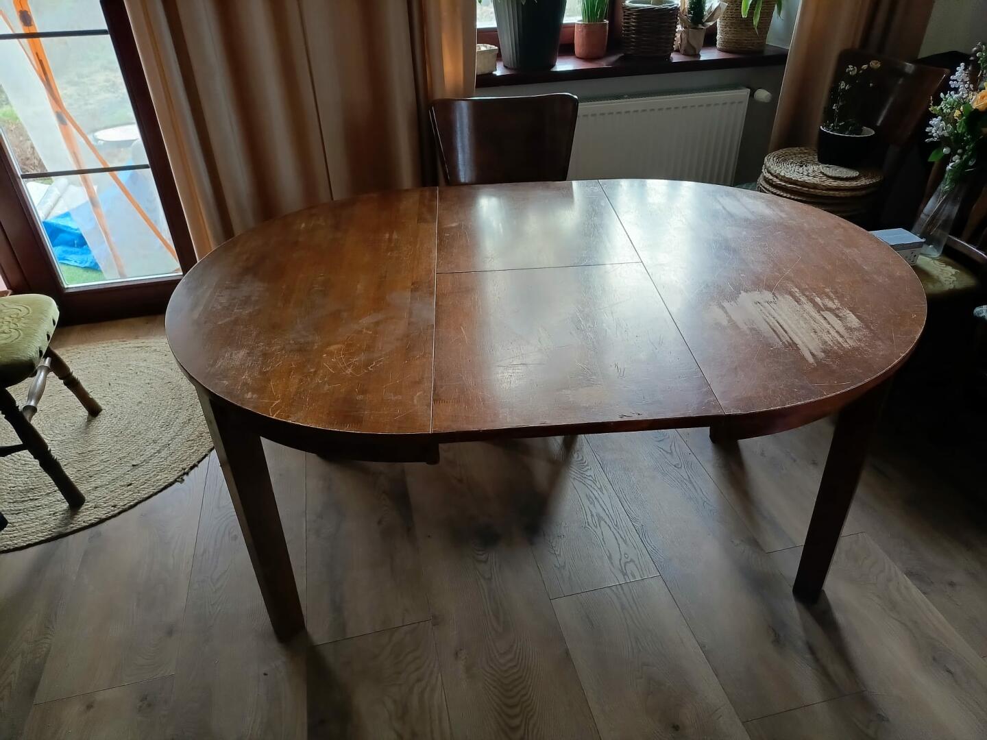 Sprzedam drewniany duży stół do salonu, pokoju, jadalni. Stan dobry, na blacie wytarty ślad, więc stół do niewielkiego odświeżenia